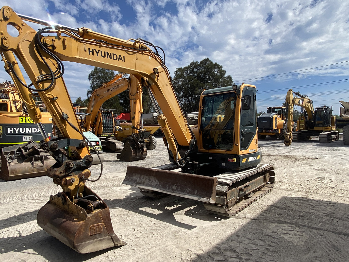 Standard quick hitch, Tilting mud bucket, Track pads, Hammer piping